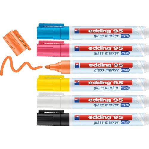 edding 95 Non-permanent Glasmarker Farbig sortiert Mittel Filzspitze 6 Stück