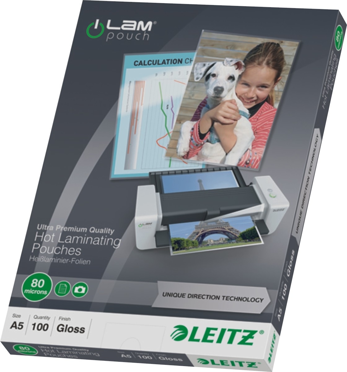 LEITZ Laminiertaschen iLAM A5 80mic glänzend VE=20x100 Stück