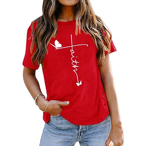 Per donna Maglietta Farfalla Lettera Fede Essenziale Manica Corta Girocollo Top Regolari Quotidiano Blu navy (carattere bianco) Nero (carattere bianco) Verde scuro (carattere bianco) grigio scuro