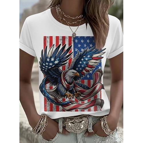 Giorno dell'Indipendenza Americana Per donna Maglietta Grafico Bandiera Americana Bandiera Nazionale Vintage Elegante Classico Manica Corta Girocollo Top Regolari Quotidiano Weekend Stampato Blu Nero