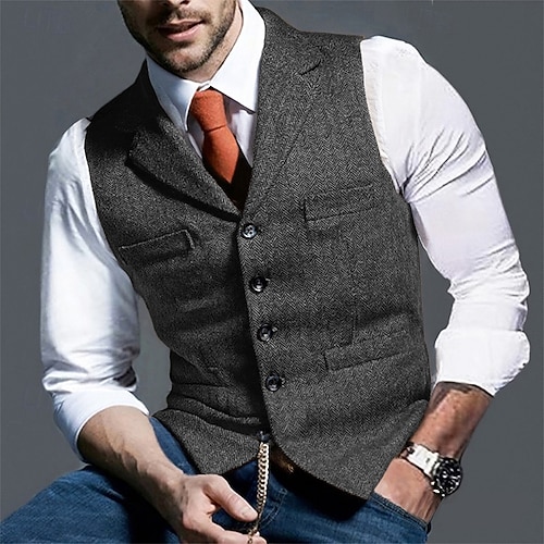Per uomo Gilet Vacanza Feste Affari Moda Casual Primavera Autunno Tasca Bottoni Poliestere Confortevole Semplice Monopetto Un Bottone Bavero Vestibilità regolare Caffè Marrone Nero Verde Grigio