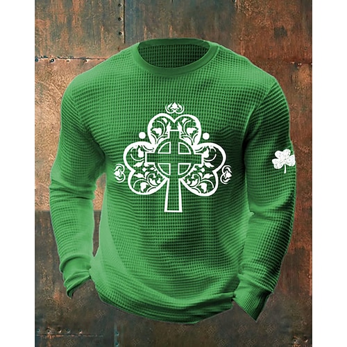 Giorno di San Patrizio San Patrizio Festa di San Patrizio Per uomo Trifoglio Camicia a nido d'ape Maglietta Manica Lunga maglietta Girocollo Camicia Sport Moda Classico Quotidiano Vacanza Feste Nero