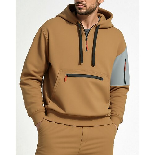 Per uomo Felpa con cappuccio Felpa con cappuccio e zip corta Nero Giallo Vino Blu marino Con Cappuccio Blocco di colori Patchwork Tasca Sport Outdoor Quotidiano Ferie Poliestere Streetwear
