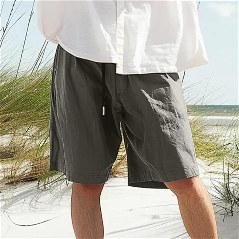 Men's Linen Shorts Summer Shorts Beach Shorts Pocket Drawstring Elastic Waist Plain Comfort Breathable Short Vacation Holiday Beach Hawaiian Boho Black White