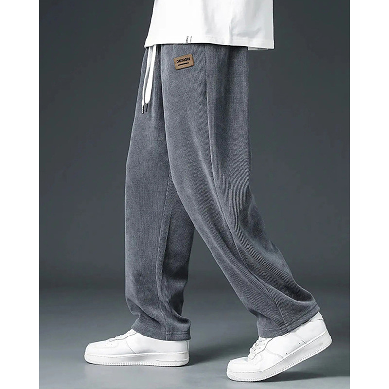 Men's Corduroy Pants Trousers Casual Pants Pocket Elastic Waist Drawstring Plain Comfort Sports Outdoor Daily Fashion Casual Black Navy Blue Micro-elastic