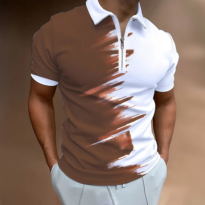 Men's Ombre Zip Polo Shirts Short Sleeve Polo Shirts Collared Shirts Casual Athleisure Daily Wear 3D Print Summer Blue Brown
