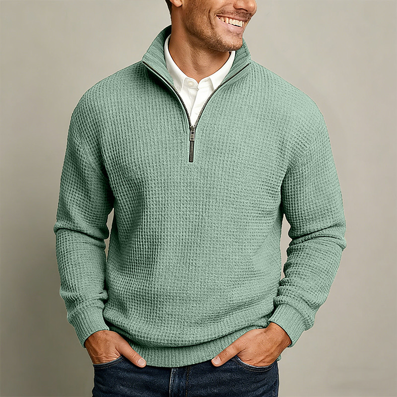 Men's Sweatshirt Waffle Sweatshirt Pullover Quarter Zip Sweatshirt Apricot Wine Red Black White Light Green Standing Collar Plain Textured Casual Daily Sports Outdoor Streetwear Cool Sportswear