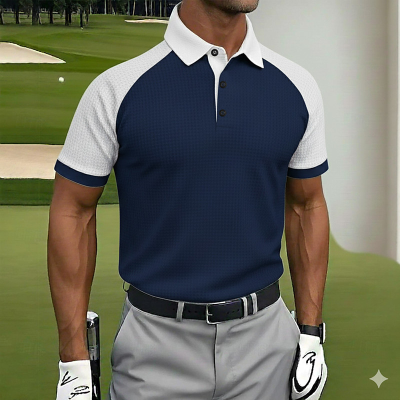 Men's Color Block Golf Waffle Polo Shirts Sports Polo Shirts Short Sleeve Polo Shirts Collared Shirts Casual Athleisure Buttons Summer Blue Navy Blue Light Purple