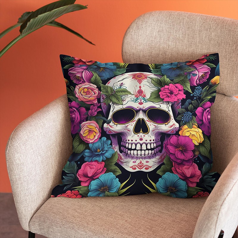 Halloween Double Side Pillow Cover 1PC Skull Day of Dead Soft Decorative Square Cushion Case Pillowcase for Bedroom Livingroom Sofa Couch Chair Decorations