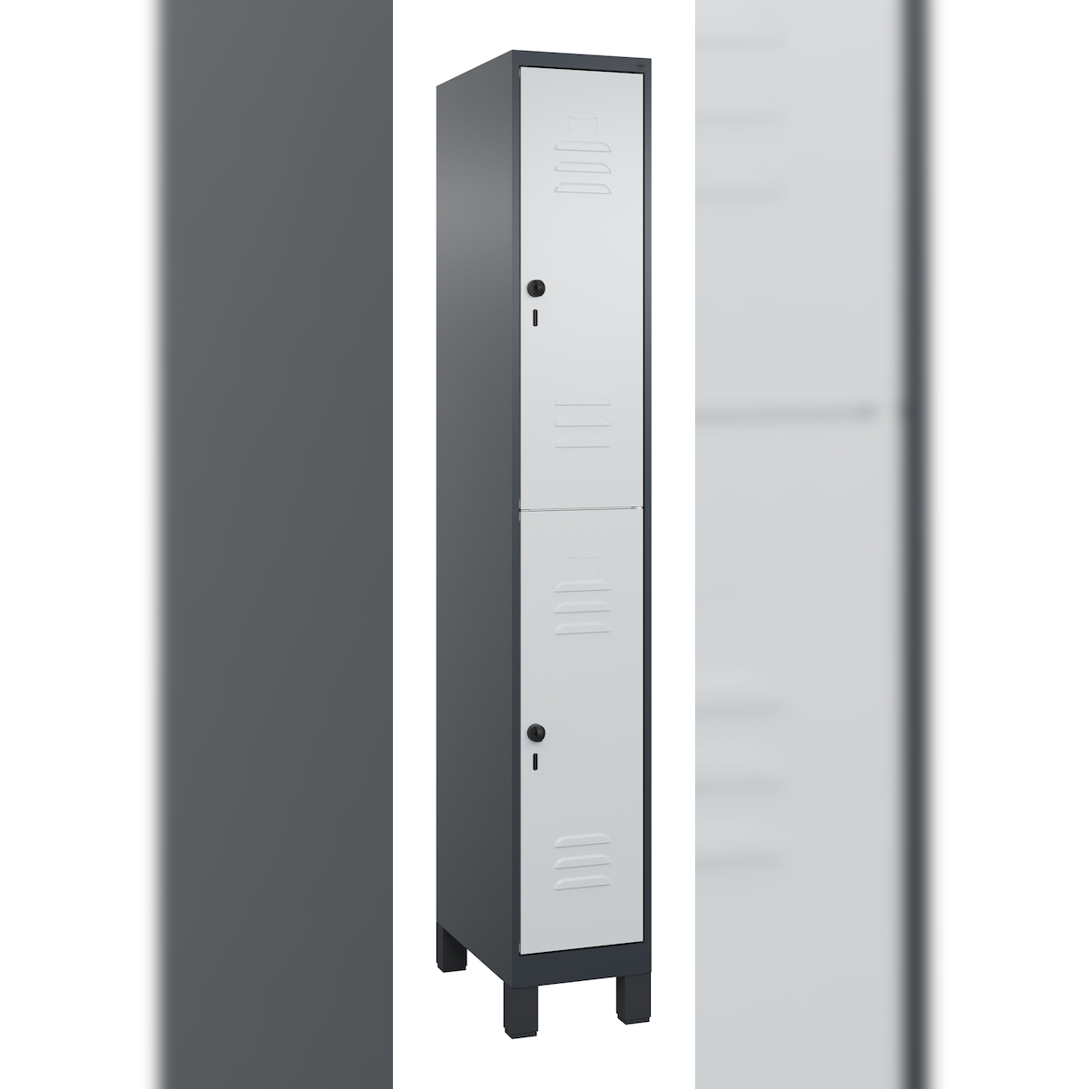 C+P Spind Classic PLUS, Füßen, 2 Abteile, HxBxT 195x30x50cm, Sicherheitsdrehriegel, Anthrazit/Hellgrau von PROREGAL