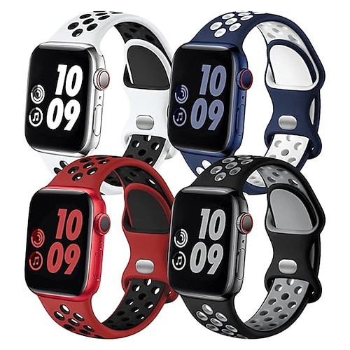 4 Packung Sportarmband Moderne Schnalle Sport Loop Kompatibel mit Apple Watch Armband 38mm 40mm 41mm 42mm 44mm 45mm 49mm Zwei Ton Verstellbar Silikon Ersatzarmband für iwatch Ultra 3 2 Series 11 10 9