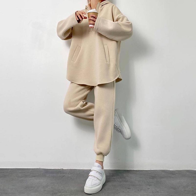 Women's 2 Piece Tracksuit Lounge Hoodie Sweatsuit Sets Pocket Solid Colored Clothing Suit Fall Black White Outdoor Travel Sports Moisture Wicking Long Sleeve Sport Activewear Micro-elastic Regular Fit