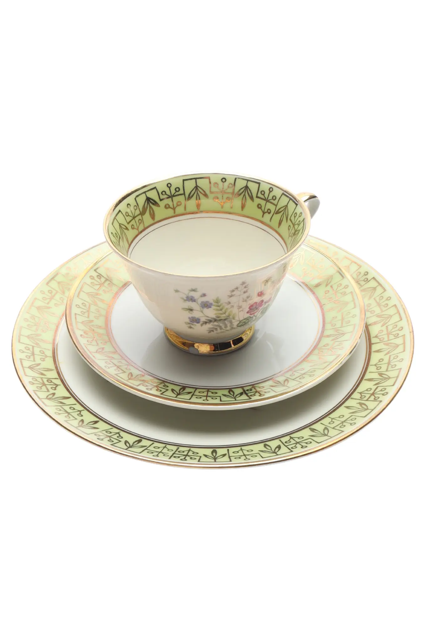 BAVARIA PORZELLAN Sammelgedeck 3 Teile weiß grün gold Blumenmuster