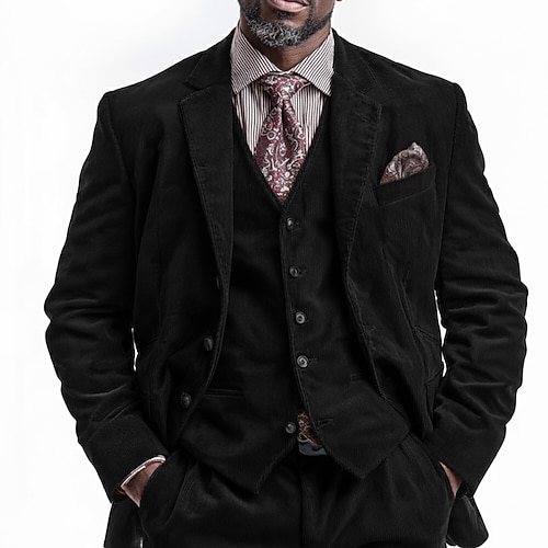 Uomo Affari Feste Abito in velluto a coste Bavero classico Nero Borgogna Festa Casual A righe Vestibilità su misura 3 pezzi Monopetto - 3 bottoni