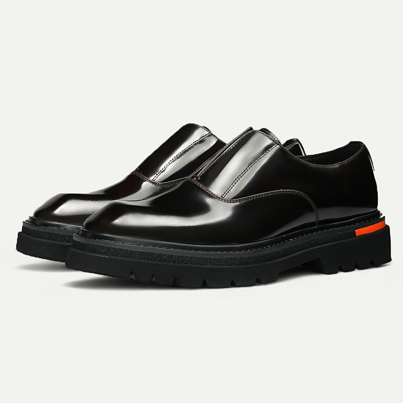 Men's Glossy Brown Leather Loafers – Classic Slip-On Business Shoes with Square Toe for Work, Banquets and Special Occasions