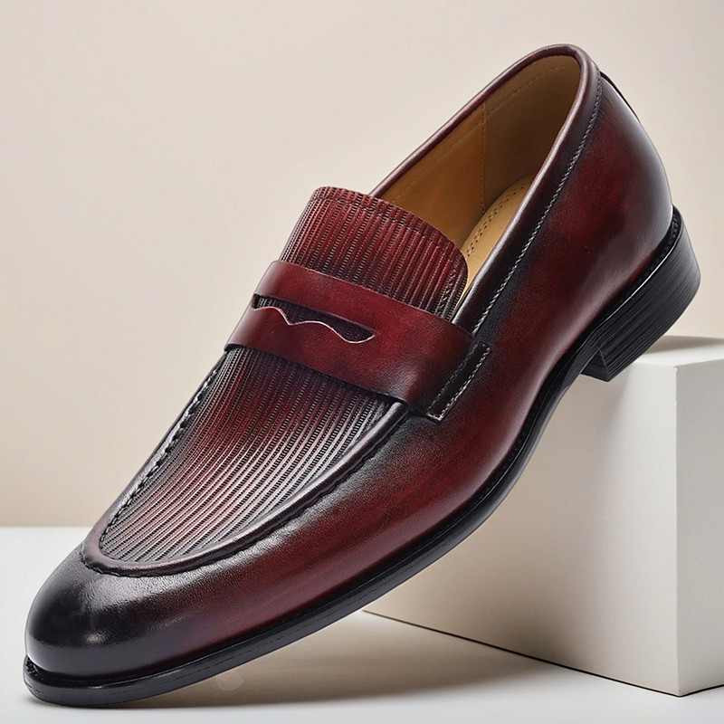 Men's Burgundy Penny Loafers – Classic Slip-On Dress Shoes with Round Toe for Business, Office and Formal Events