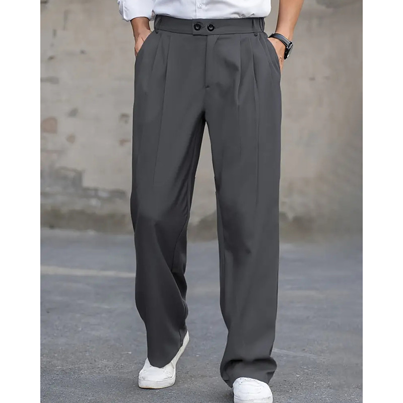 Men's Dress Pants Trousers Chinos Buttons Pocket Plain Comfort Formal Party Work Fashion Classic Style Black Blue Micro-elastic