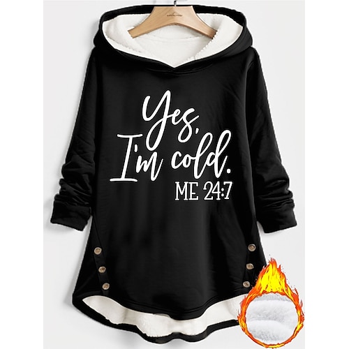 Damen Sweatshirt-Pyjama mit Fleecefutter Buchstabe Warm Flauschig Langarm Rundhals Rundhalsausschnitt Lange Oberteile Lässig Sport Schwarz Gelb Rosa Rote Blau Herbst Winter