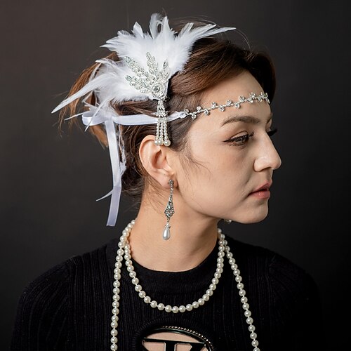 Retrò Vintage Anni Ruggenti Anni 1920 Fascia Flapper Copricapo Accessori per la testa Il grande Gatsby Piuma Costume Per donna Natale Carnevale Mascherata Festa a tema retrò Danza Charleston Adulti