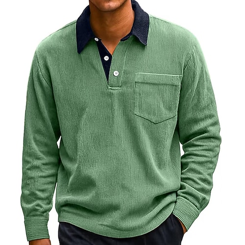 Per uomo Camicia di Velluto a Coste Maglia da golf Lavoro Casuale Bavero Manica Lunga Essenziale Moderno Blocco di colori Bottoni Primavera Autunno Vestibilità regolare Nero Bianco Rosso Blu marino