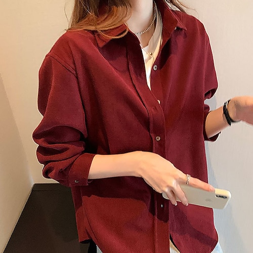 Per donna Blusa Top Eleganti Semplice Elegante Vintage Signore Manica Lunga Colletto a Camicia Top Regolari Lavoro Quotidiano Ferie Arricciato Patchwork Bottoni Bianco Rosso Cachi Grigio Autunno