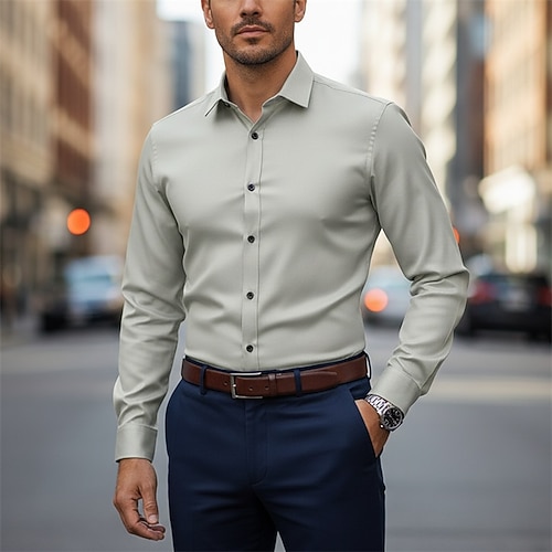 Per uomo Camicia elegante Camicia con Bottoni Semplice Lavoro Matrimonio Nero Bianco Verde chiaro Rosa Manica Lunga Collo ripiegato Tutte le stagioni Abbigliamento Base