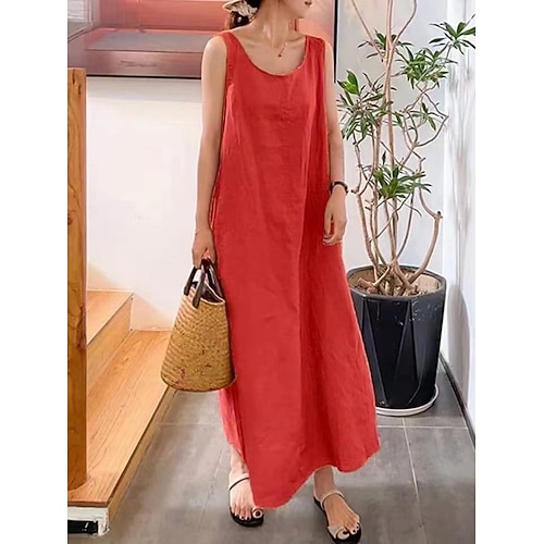 Per donna Abito maxi Finto cotone e lino Abito Estivo Abito Sottoveste Casual Quotidiano Vestibilità comoda Semplice Senza Maniche Girocollo Blu blu navy Giallo Rosa Estate Primavera