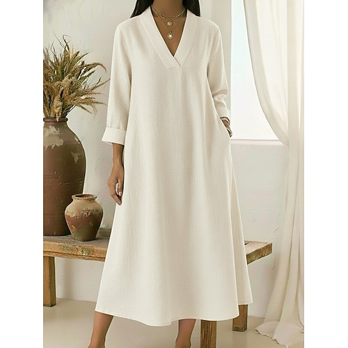 Per donna Abito maxi 100% cotone Vestito a caftano Vestito Casual Essenziale Moderno Quotidiano Weekend Vestibilità comoda Semplice Mezza Manica Scollo a V Nero Blu marino Marrone Verde Estate