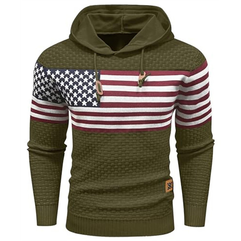 Men's Hoodie Black Army Green Red Blue Khaki Hooded Jacquard National Flag Drawstring Print Sports Outdoor Daily Holiday Polyester Streetwear Basic Casual Spring Fall Clothing Apparel Hoodies