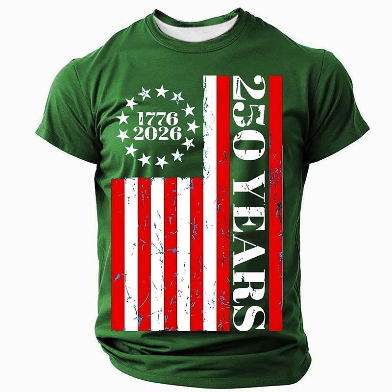 US America 250 Year Anniversary Patriotic T Shirts For Men American US Flag T Shirt Short Sleeve T shirt 3D Print Crew Neck Shirt Daily Military Street Daily Black Blue Green Summer Spring Clothing