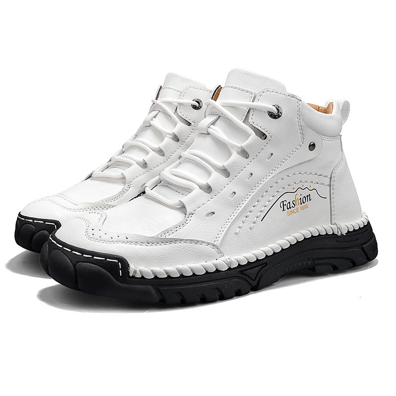Men's White Handmade Casual Boots with Lace-Up Design, Non-Slip Sole and Lightweight Comfort, Stylish Streetwear Boots for Daily Wear and Travel