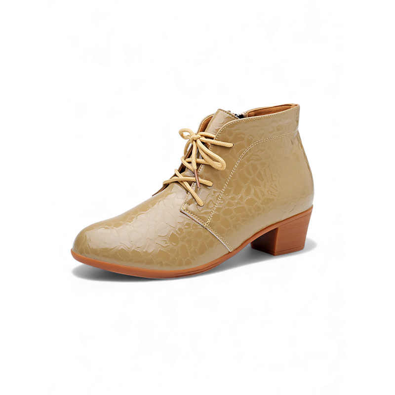 Women's Fleece-Lined Ankle Dance Boots - Warm Lace-Up Short Boots with Side Zipper Stable Block Heel for Professional Ballroom, Latin Winter Dance Training