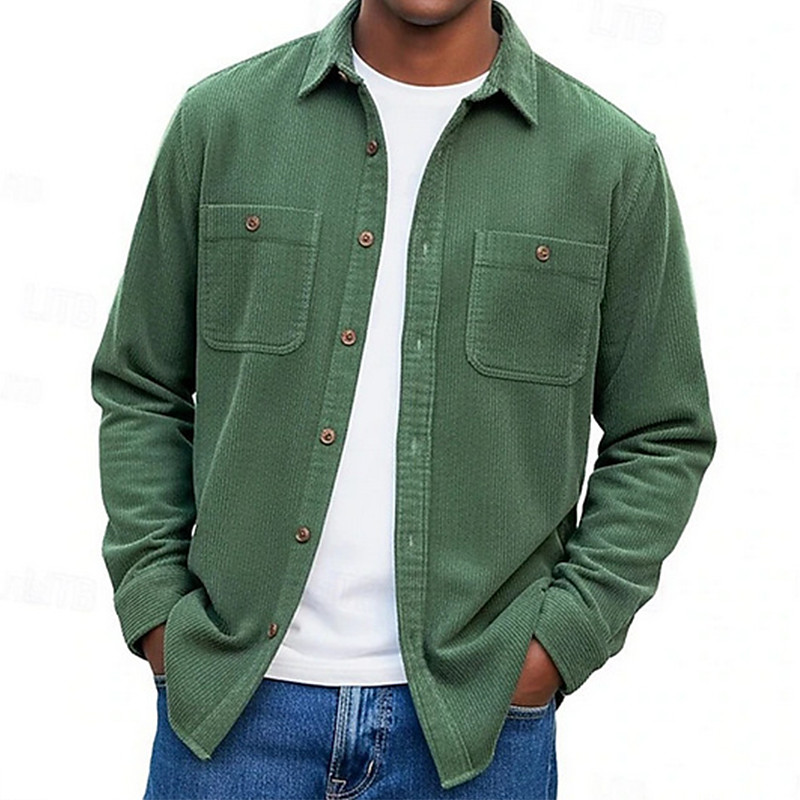 Men's Shirt Casual Shirt Work Shirt Corduroy Shirt Button Up Shirt Pink Navy Blue Purple Green Gray Long Sleeve Plain Shirt Collar Casual Daily Front Pocket Clothing Apparel Elegant Fashion Casual