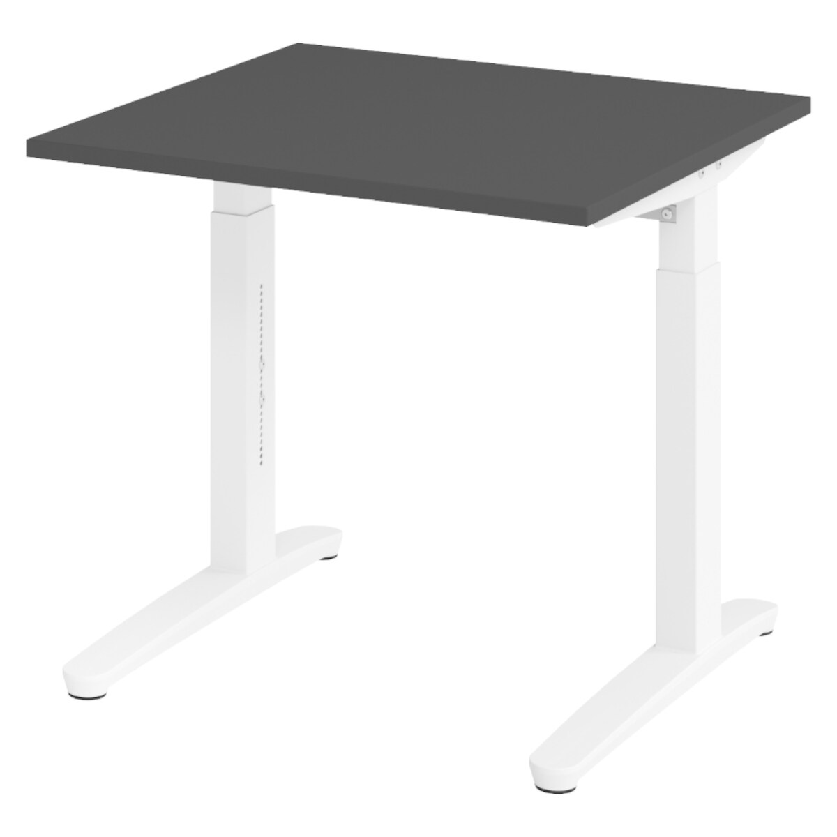 bümö manuell höhenverstellbarer Schreibtisch 80x80 in graphit Gestell in Weiß - PC Tisch höhenverstellbar & klein, höhenverstellbarer Tisch Büro,