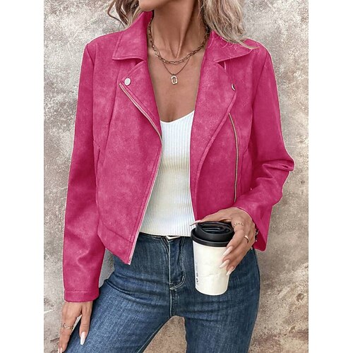 Damen Kunstlederjacke Bikerjacke Outdoor Straße Alltagskleidung Herbst Winter Kurz Mantel Normale Passform Thermowarm Atmungsaktiv Stilvoll Lässig Jacken Langarm Einfach Vollreißverschluss Mit Taschen