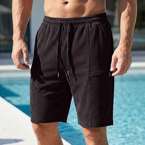 Herren Shorts Sommershorts Freizeitshorts Cordshorts Kordelzug Tasche Elastischer Bund Einfach Komfort Atmungsaktiv Kurz Outdoor Urlaub Sport Lässig Schwarz Weiß