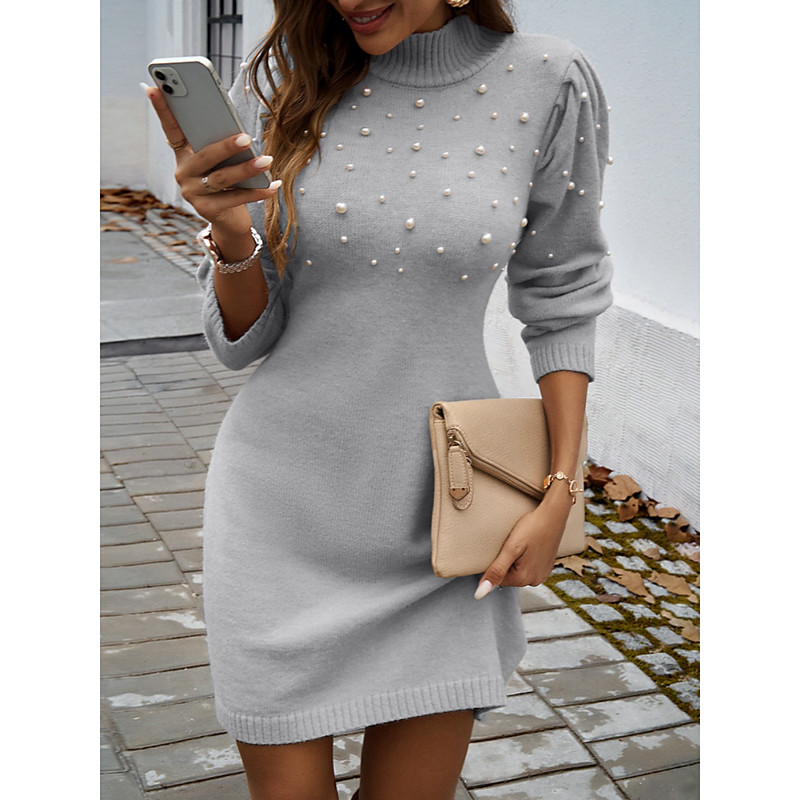 Women's Sweater Sweater Dress Elegant Casual Soft Pure Color Ribbed Turtleneck Beaded Knitted Long Sleeve Long Tops Knit Outdoor Daily Weekend Black White Fall Winter