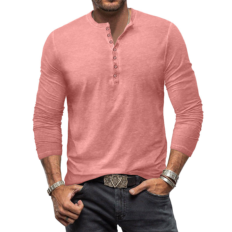 Men's Henley Shirt Tee Top Long Sleeve Shirt Long Sleeve Plain Vintage Fashion Basic Henley Vacation Street Going out Summer Wine Pink Royal Blue Henley T-Shirt