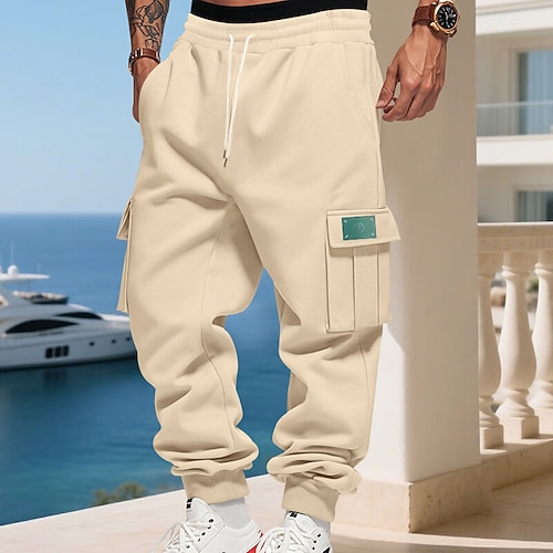 Herren Jogginghose Hose Cargo-Jogginghose Kordelzug Tasche Elastischer Bund Einfach Komfort Sport im Freien Täglich Mode Lässig Schwarz Armeegrün Mikroelastisch