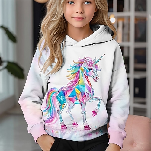 Mädchen 3D Einhorn Kapuzensweatshirt Langarm Herbst Winter Mode Niedlich Basic Kinder 4-12 Jahre Mit Kapuze Outdoor Lässig Täglich Normale Passform