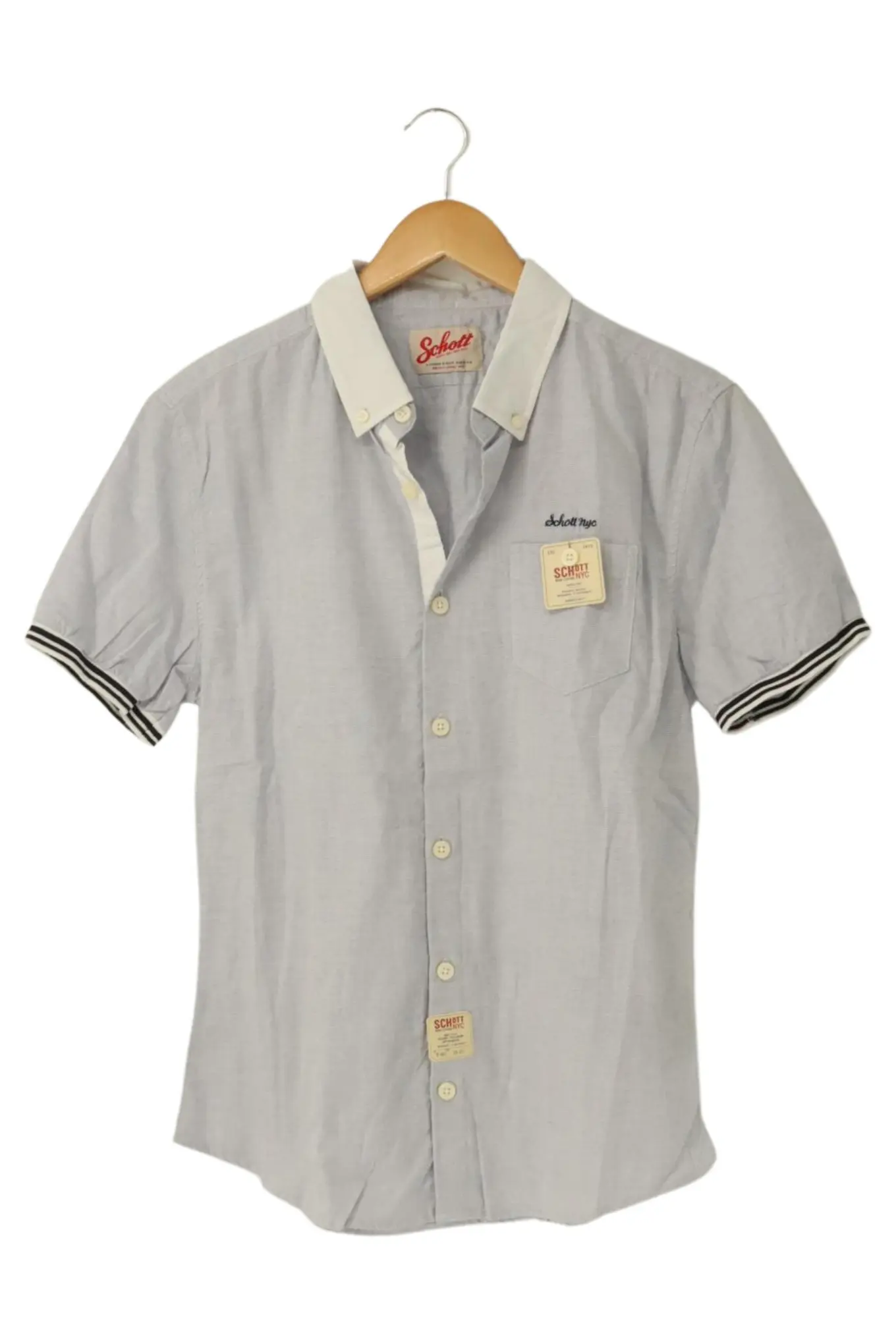 SCHOTT NYC Hemdbluse Damen Gr. M Blau Kurzarm Vintage Look