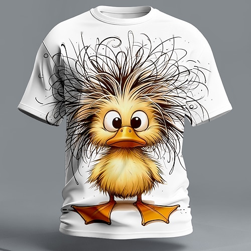 Maglietta da uomo divertente con anatra dai capelli spettinati, occhi grandi, anatroccolo carino, t-shirt grafiche, piume scarabocchiate, stampa, manica corta, abbigliamento casual estivo,