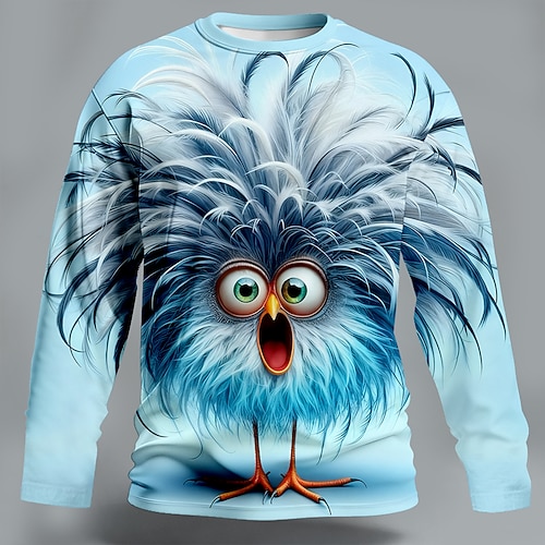 Maglietta a maniche lunghe da uomo con stampa di uccelli pazzi e divertenti, struzzo con grandi occhi in 3D, t-shirt grafiche, girocollo, top casual, abbigliamento, abbigliamento S M L XL XXL XXXL