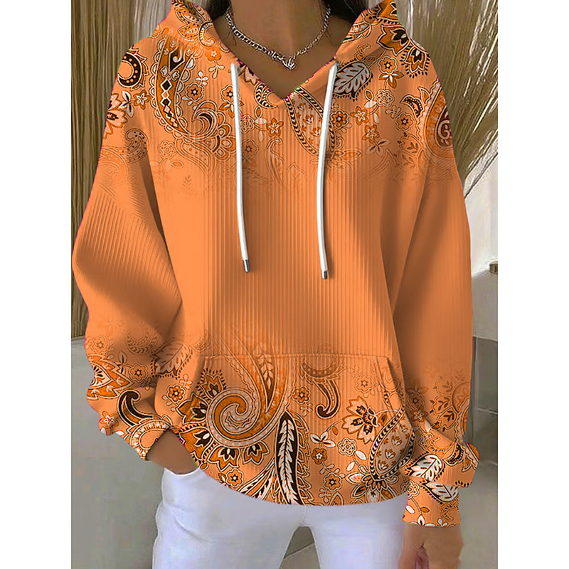 Women's Pullover Hoodie Sweatshirt Graphic Paisley Casual Long Sleeve Hooded Regular Tops Dailywear Casual Sports Pink Blue Purple Orange Fall Winter