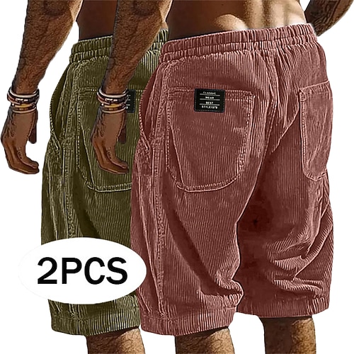 Per uomo Shorts Pantaloncini casual Pantaloncini di velluto a coste Tasca Elastico in vita Semplice Comodità Traspirante Sopra il ginocchio Casuale All'aperto Spiaggia Vacanza Moda Nero kaki Verde