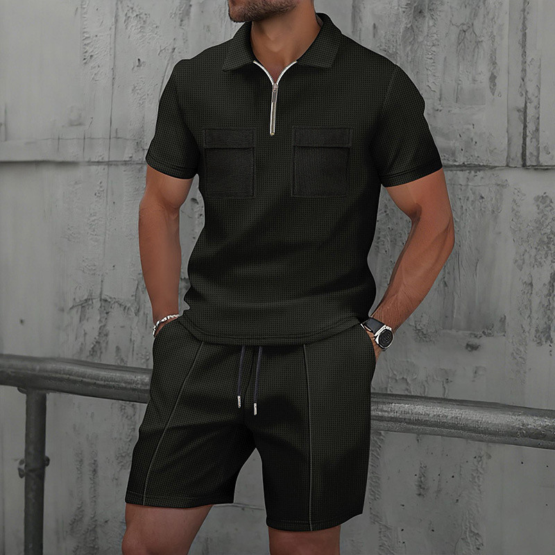 Men's Waffle Polo Shirts Polo Shirts Daily Wear Beach Lapel Short Sleeve Fashion Hawaiian Plain 2 Piece Summer Spring Regular Fit Wine Depression Green Black White Navy Blue Blue Waffle Polo Shirts