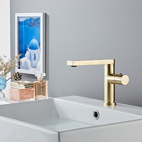 miscelatore lavabo bagno alto corto, rubinetteria lavabo monoblocco monocomando monoforo a ponte con tubo caldo e freddo, rubinetteria nero dorato