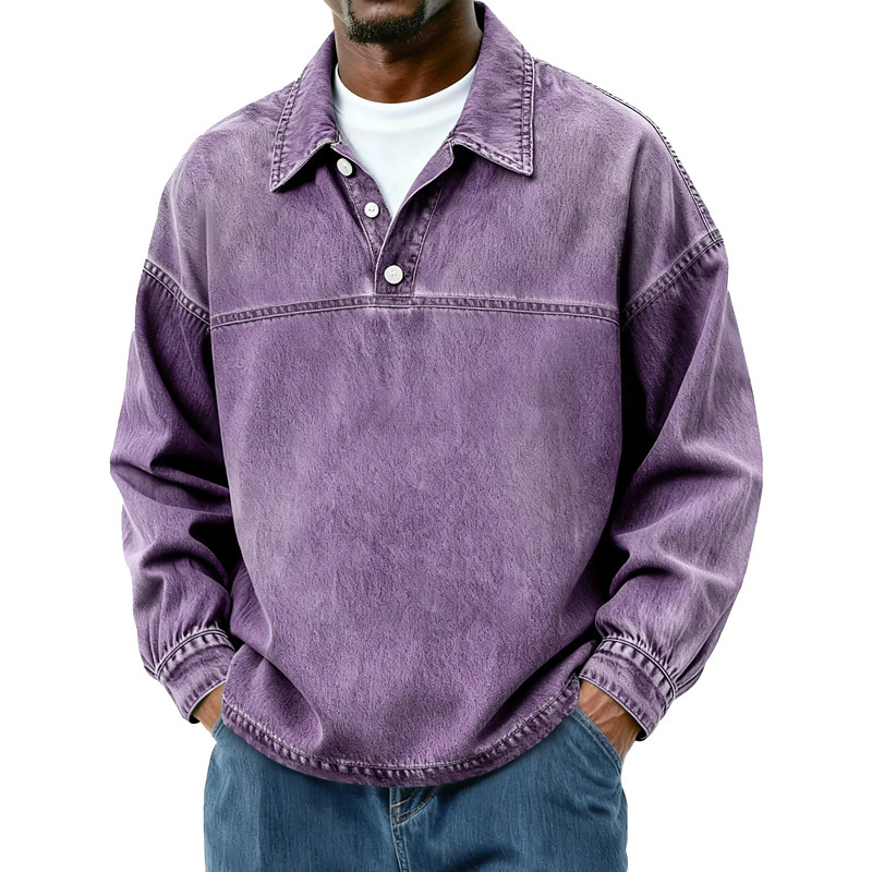 Men's Polo Business Casual Lapel Long Sleeve Comfortable Office Solid / Plain Color Buttons Spring Summer Regular Fit dark brown Robin's Egg Blue Violet Black Light Green Pink Polo
