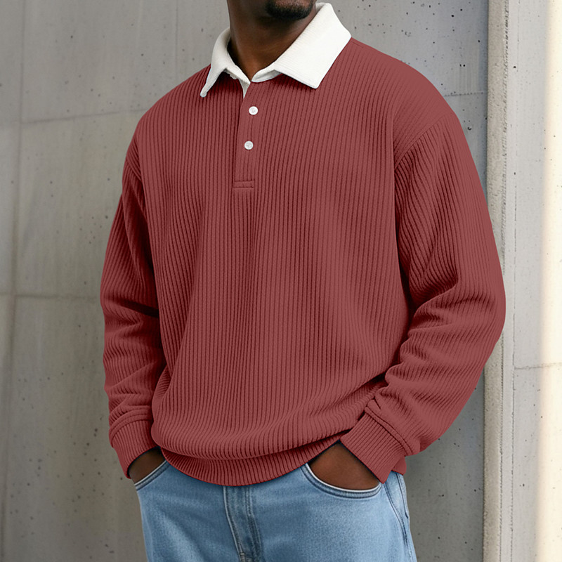 Men's Rib Knit Top Textured Business Casual Ribbed Polo Collar Long Sleeve Fashion Basic Solid Color Knitting Fall Winter All Seasons Slim Fit Light Blue Black White Gray Wine Navy Blue Rib Knit Top