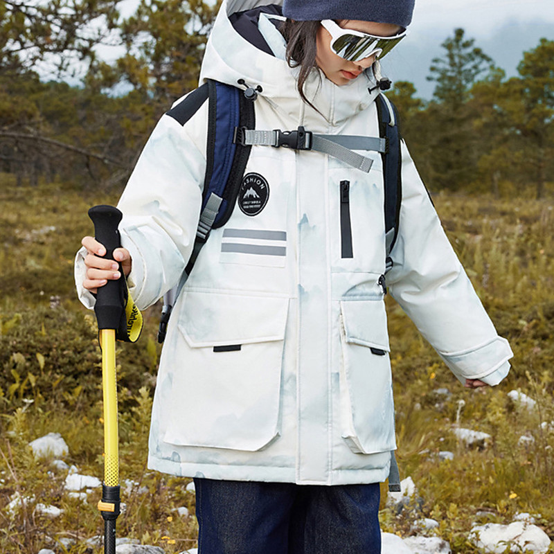 Kids Girls' Down Jacket Outdoor Jacket Puffer Jacket Camo Fashion Waterproof Keep Warm Windproof Outdoor Coat Outerwear 4-12 Years Fall Black White Pink